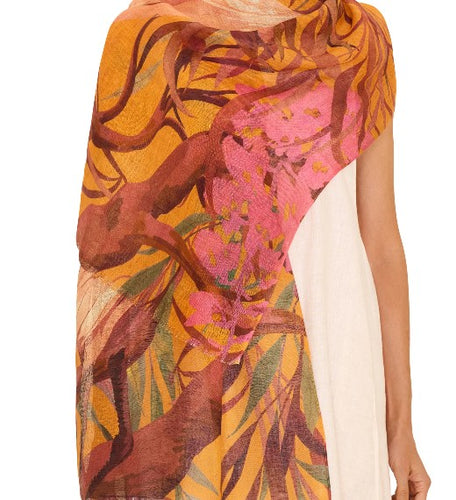 Product Title Linen & Cotton Scarf – Oriental Crane in Ochre